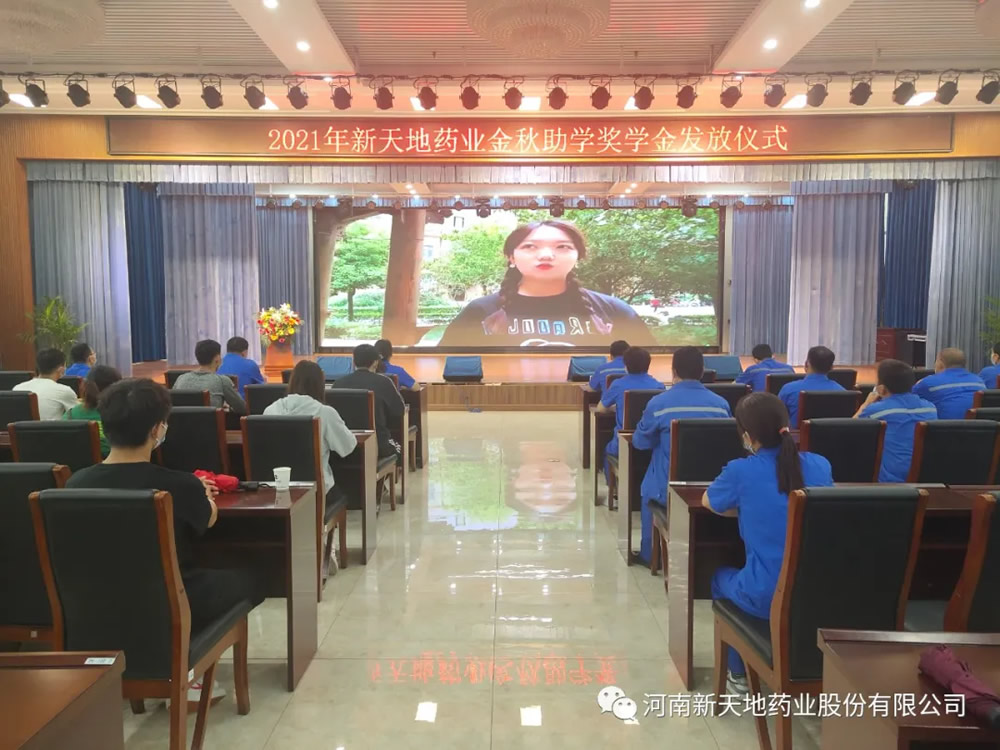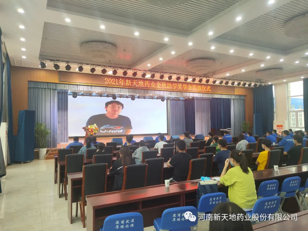 公司秉承“赢商载道,厚积尚德”价值观,履行企业的社会责任,践行尊师重教理念,坚信“知识改变命运”助学回报乡梓,开展金秋助学等多种活动支持关注员工子女成长发展,从有记录可查的2012年至今已累计捐助近30万元,近百名员工子女受到资助,很多新天地药业子弟带着新天地人的殷殷期望,迈入社会成长为中坚力量在各行各业大展宏图,为理想而拼搏。
